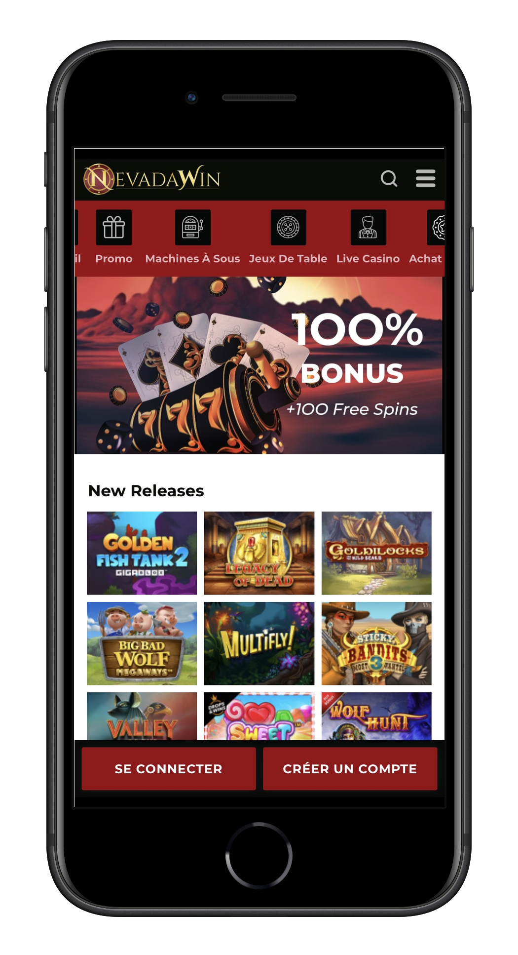 Pour jouer sur votre téléphone, vous aurez besoin d'un navigateur compatible HTML5. Ne comptez donc pas sur le bonus Nevada Win de 10 euros pour l'installation de l'application. Entrez simplement l'URL dans la ligne de votre navigateur et connectez-vous ou effectuez une nouvelle inscription.